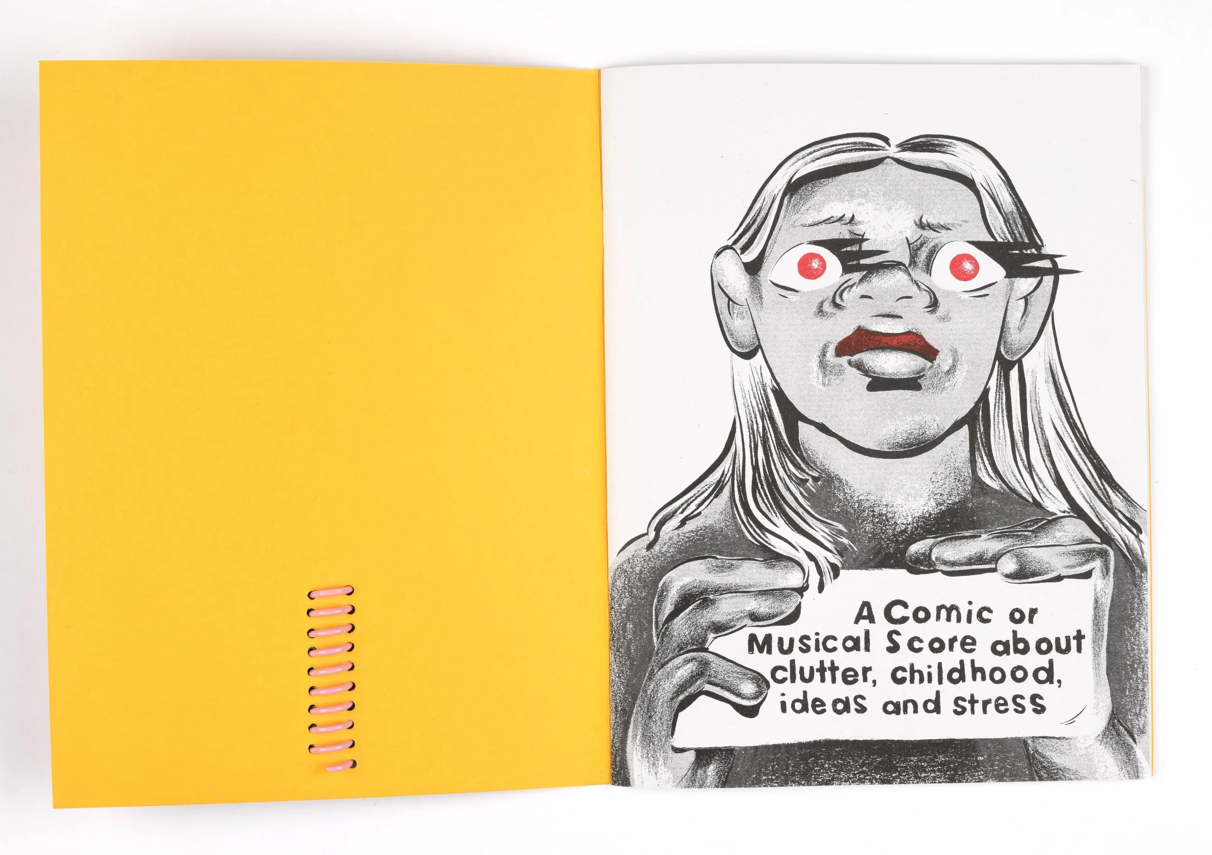 Clutter Fucker explores further the relationship between music and comics, this time moving more towards graphic scores in musical notation. Using memories of clutter and personal relationships to objects as the subject matter for the narrative the comic attempts to explore complex emotional relationships with experienced visual forms in childhood.